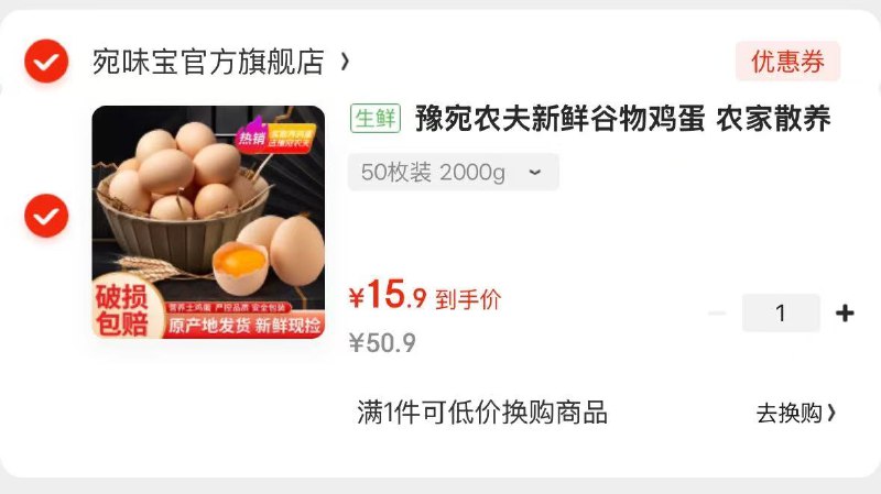 跳转app浏览商品砸落或加车砸金蛋 概率砸5卷,叠6首单,凑后【7.85】