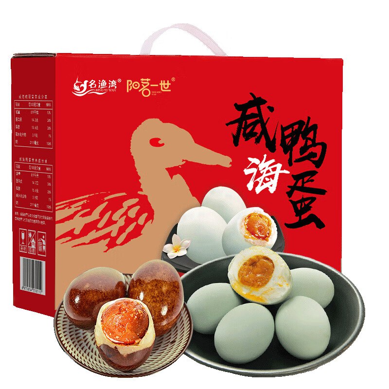🎒 名渔湾咸海鸭蛋烤鸭蛋礼盒50g×20枚混合装,