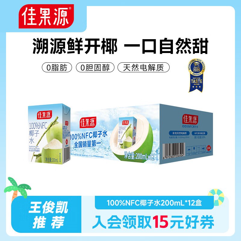 27.9元 佳果源 椰子水200ml×12瓶