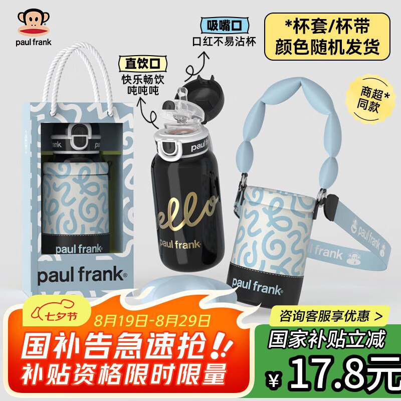 部分掉落25券,大嘴猴 保温杯 玄黑580ml 背带款 凑200-100,499-40,满减后,27.4