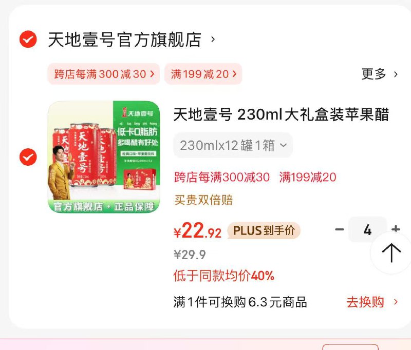 天地壹号苹果醋饮料喜宴装 230mlx12罐