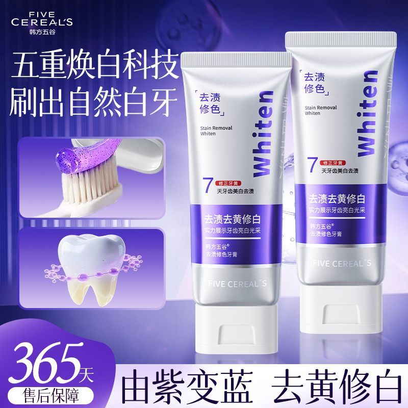 韩方五谷小苏打牙膏美白去黄去渍亮白牙齿酵素清新口气护龈大容量
