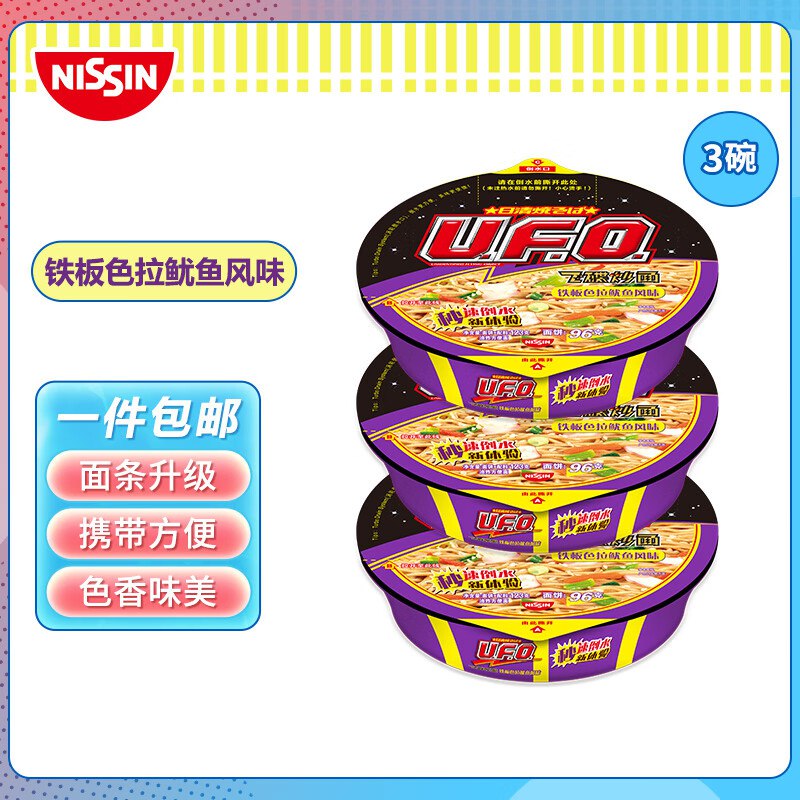 🎒 日清铁板色拉鱿鱼味面123g×12碗整箱装,买3件