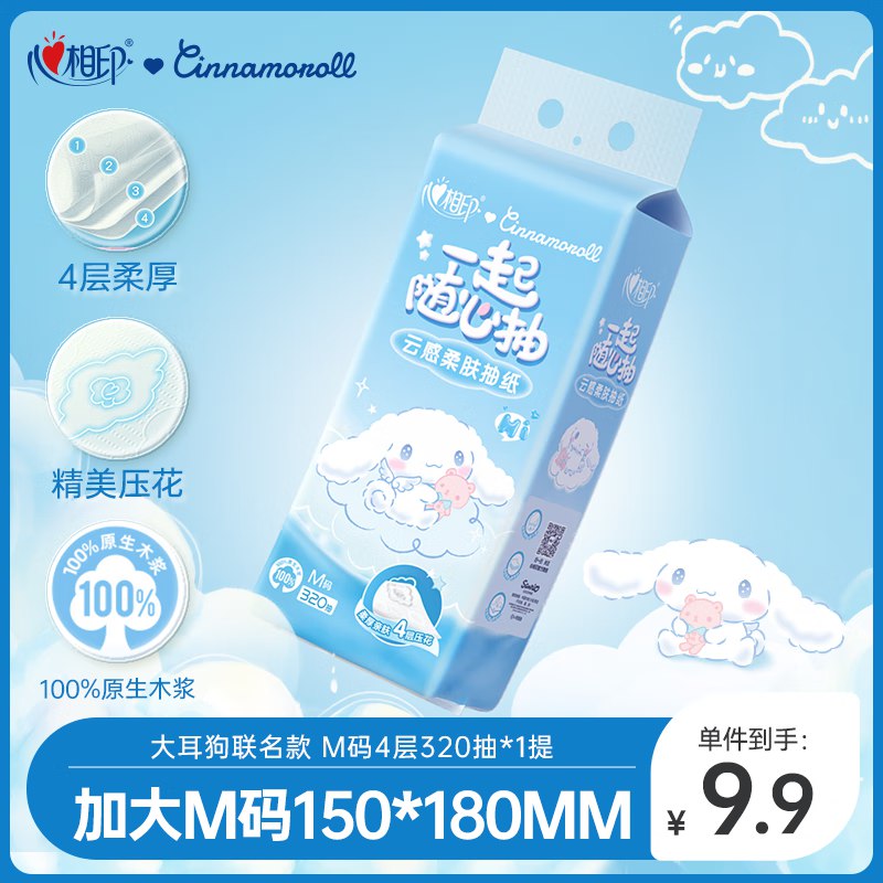 心相印抽纸 云感柔肤4层320抽1提