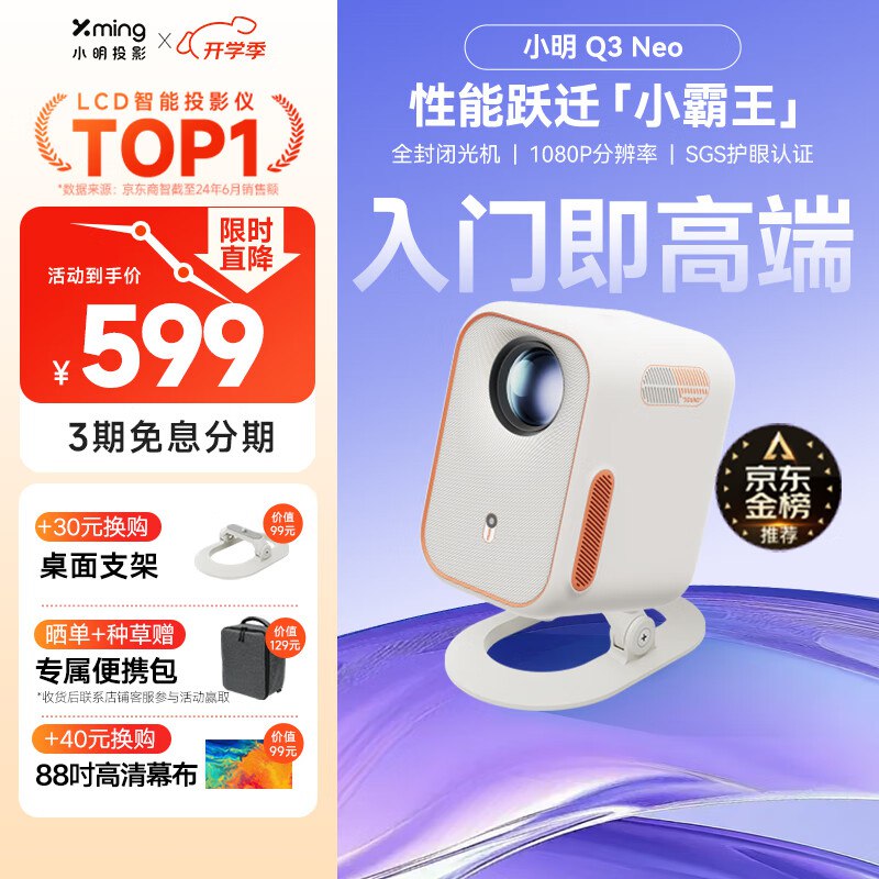 🎒 小明 Q3 Neo 投影仪 真1080P,国补后339,按需