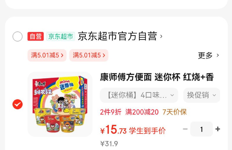 任选4桶171元,Plus仅156;