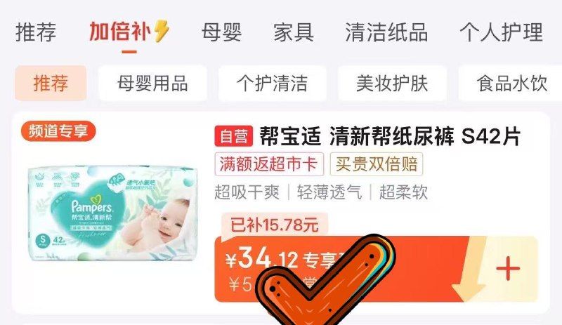 跳转app点击-百亿补贴-加倍补-食品水饮