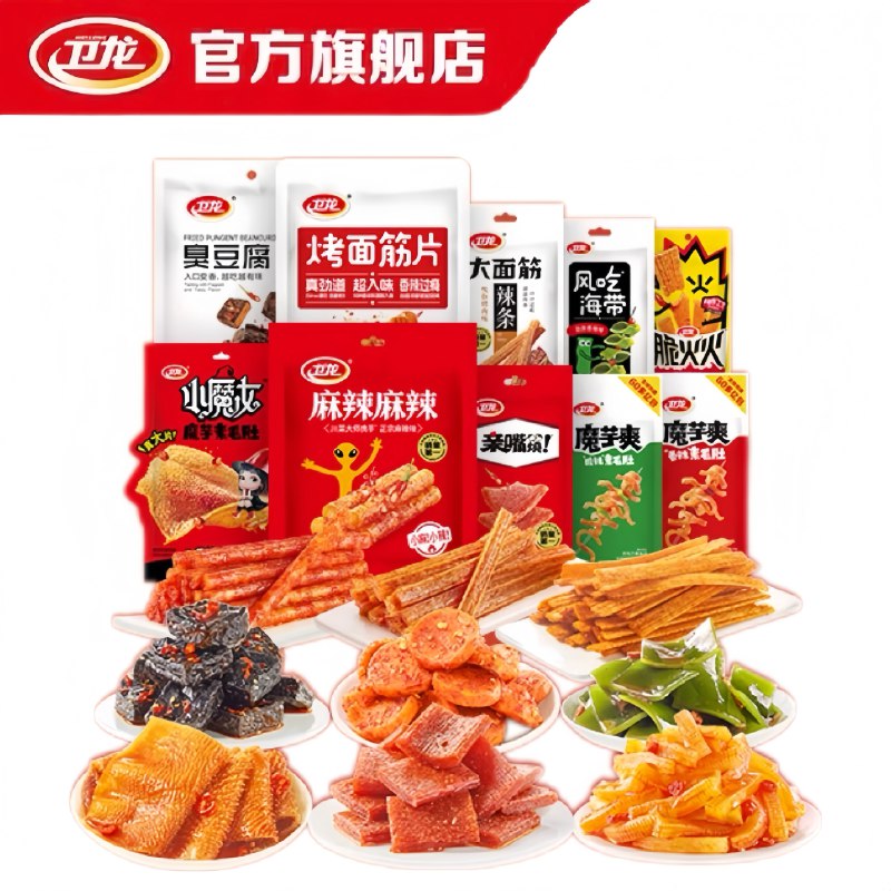 划重点:连赠品都是值钱货!线下5.9亓面筋当赠品送! 卫龙食品旗舰店•爆款零食组合 下拉!叠淘金币,任选⑦件14.2亓 含赠蕞低到手10件,折1.4亓/件!! (任选3个以上不同选项,价格才成立!